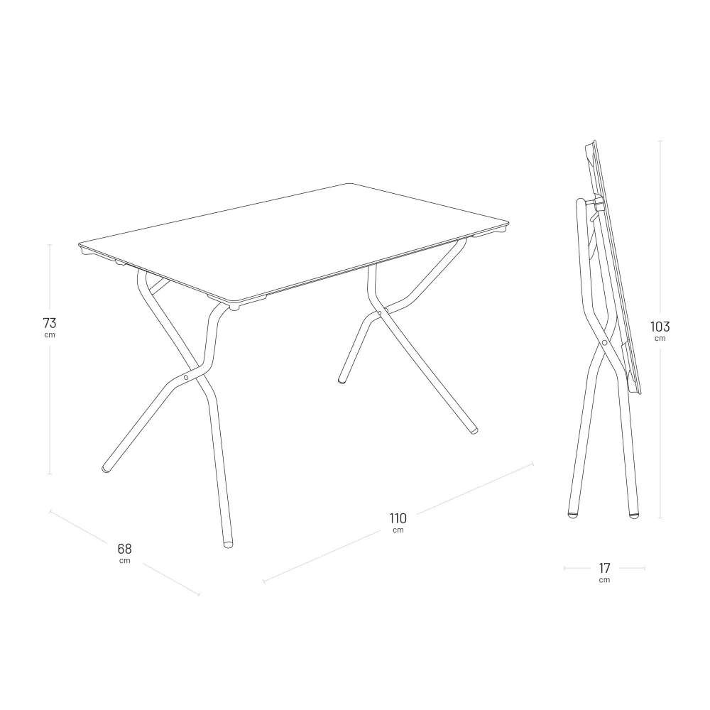 Składany stół do użytku na zewnątrz. Blat HPL: 68 x 110 x 73 cm